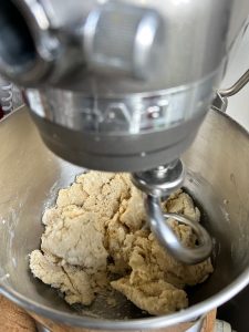 Une fois que votre pâte forme une boule, enveloppez-la de film alimentaire et laissez la reposer 1 heure au frigo.