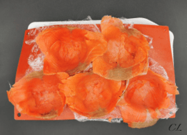 Tapissez les moules avec les tranches de saumon fumé en les faisant se chevaucher. Il ne doit pas y avoir d’espace!