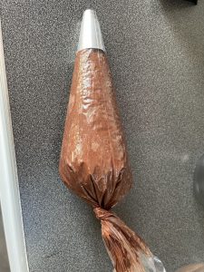 Répartir la ganache à l’aide d’une poche à douille lisse et coller les coques ensemble.